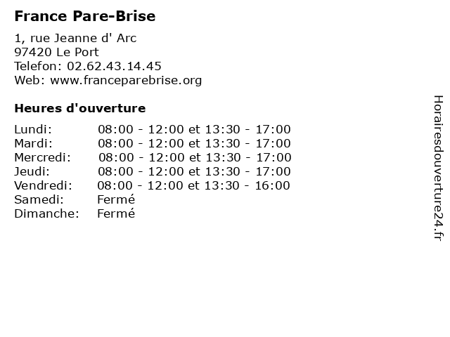 Lundi | 08:00-12:00 et 13:30-17:00 |