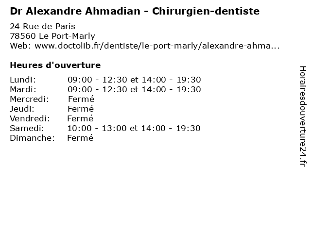 | Lundi | 09:00-12:30 et 14:00-19:30 |