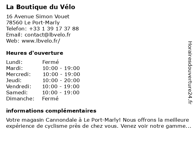 | Lundi | Fermé |