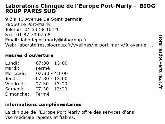 Termes de recherche pour Laboratoire Clinique de l'Europe Port-Marly - BIOGROUP PARIS SUD:de, marly, paris, port, laboratoire, clinique, sud, l'europe, biogroup, dépistages, laboratoire de diagnostic |