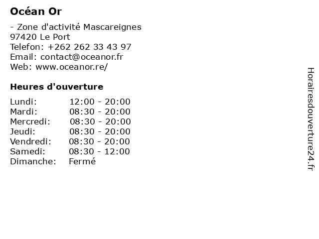 1 Océan Or (Distance: 2,86 km) 60 Rue François de Mahy, 97420 Le Port bijouterie, bijoux, enfants, homme, montre, océan, océanor, or, réunion, vente 2 Océan Or (Distance: 6,96 km) 46 rue du Commerce, 97460 Saint-Paul bijouterie, bijoux, enfants, homme, montre, océan, océanor, or, réunion, vente 3 Océan Or (Distance: 17,19 km) 66 Rue du Maréchal Leclerc, 97400 Saint-Denis bijouterie, bijoux, enfants, homme, montre, océan, or, réunion, vente 4 Océan Or (Distance: 18,40 km) 2 Avenue Mal de Lattre de Tassigny, 97490 Sainte-Clotilde bijouterie, bijoux, enfants, homme, montre, océan, or, réunion, vente 5 DAL’ALU - Océan Indien (Distance: 1,27 km) 78 Route de Cambaie, 97460 Saint-Paul aluminium, chantiers, dal’alu, indien, océan, projet, travaux 6 Placidom Océan Indien (Distance: 1,45 km) 67 r Michel Joseph 1er ét bât B, 97420 Port (le) indien, océan, placidom |