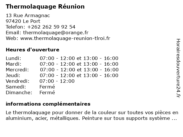 1 Galvanisation Réunion (Distance: 0,34 km) 5 Rue Stevenson, 97420 Le Port affaires, fabrication, galvanisation, métallique, réunion, service 2 Ecole d'Apprentissage Maritime de la Réunion (Distance: 0,55 km) 1 Rue Poste boite postale 26, 97420 Port (le) d'apprentissage, de, ecole, la, maritime, réunion 3 Mon Assistant Numérique La Réunion Ouest (Distance: 4,48 km) - Rue Sarda Garriga, 97419 La Possession assistant, dépannage, informatique, la, mon, mon assistant numérique la réunion ouest, numérique, ouest, réparation, réunion 4 Crédit Agricole La Réunion (Distance: 4,55 km) 20 Sarda Garriga, 97419 La Possession agricole, assurances, bancaire, banque, crédit, gascogne, la, mutuel, pyrénées, réunion, services 5 Caisse d'Allocations Familiales (CAF) de La Réunion (Distance: 4,94 km) 9 Rue Leconte-de-Lisle, 97419 La Possession administration, assoc, caf, caisse, d'allocations, de, familiales, la, réunion, services, services publics 6 Nps Réunion (Distance: 7,68 km) 19 rue Guldive, 97460 Saint Paul auto, automobiles, coréennes, distribution, détachées, japonaises, nps, pièces, réunion, vente |
