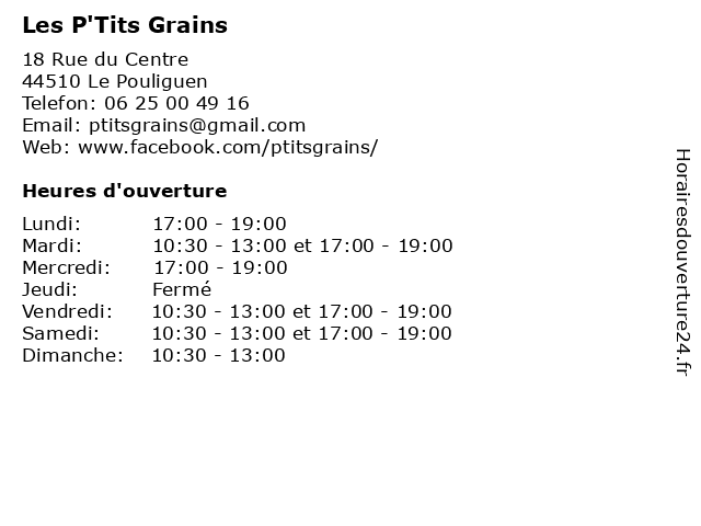 | Samedi | 10:30-13:00 et 17:00-19:00 |