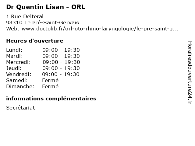 | Lundi | 09:00-19:30 |