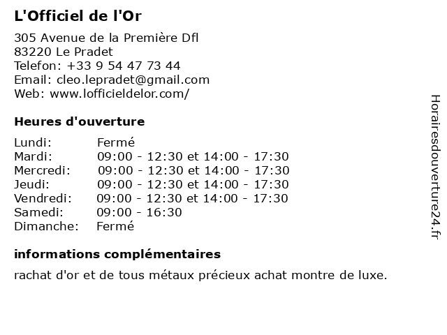 | Mardi | 09:00-12:30 et 14:00-17:30 |