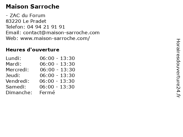 | Samedi | 06:00-13:30 |