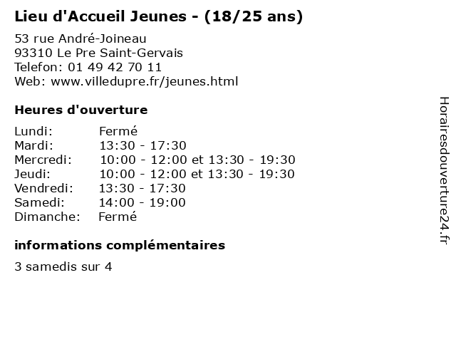 | Mercredi | 10:00-12:00 et 13:30-19:30 |