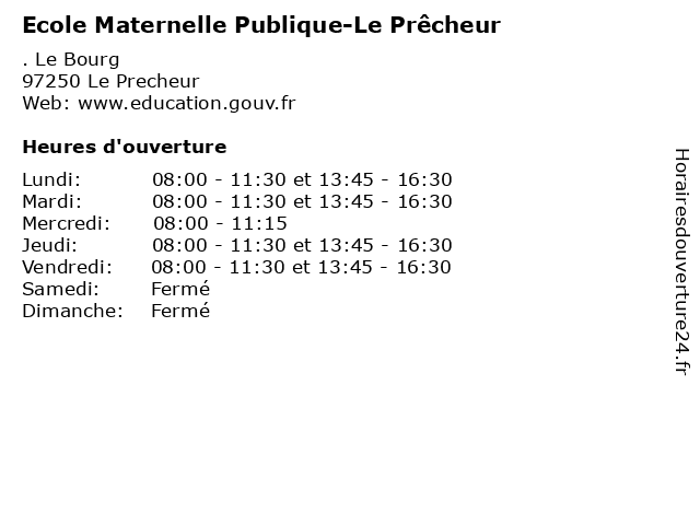 | Lundi | 08:00-11:30 et 13:45-16:30 |