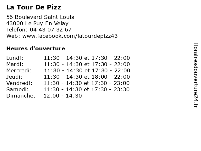 | Mardi | 11:30-14:30 et 17:30-22:00 |