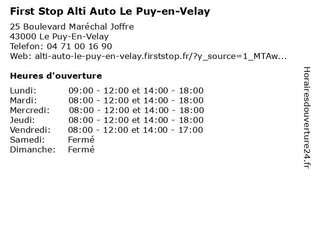 Termes de recherche pour First Stop Alti Auto Le Puy-en-Velay:en, le, puy, auto, first, stop, velay, alti, atelier d'usinage, magasin de pneus, magasin de pièces automobiles, station-service de changement de l'huile |