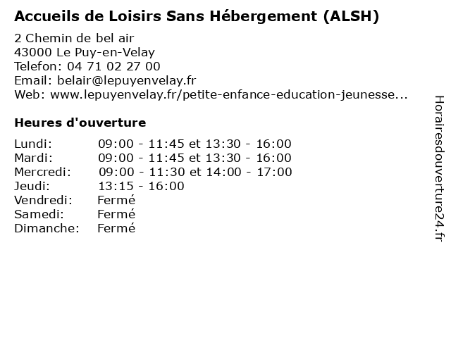 | Mercredi | 09:00-11:30 et 14:00-17:00 |