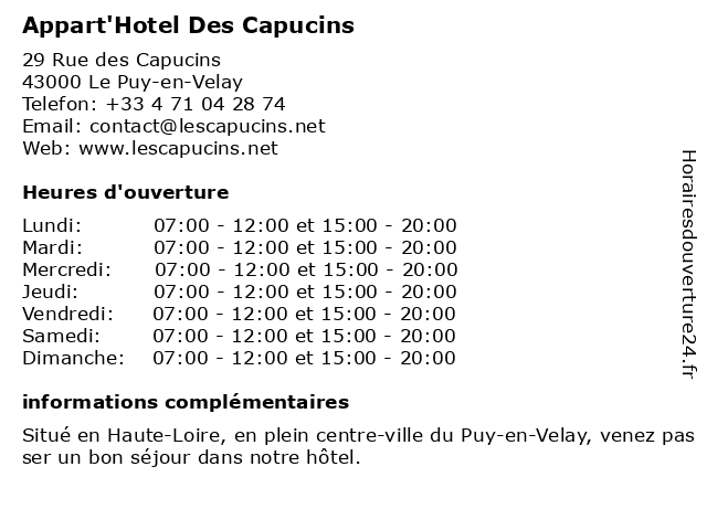 | Dimanche | 07:00-12:00 et 15:00-20:00 |
