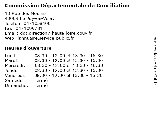 | Lundi | 08:30-12:00 et 13:30-16:30 |