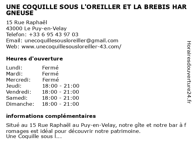 Termes de recherche pour UNE COQUILLE SOUS L'OREILLER ET LA BREBIS HARGNEUSE:la, et, sous, coquille, une, auberge, brebis, bar restaurant, chambres d'hôtes, hébergement haute-loire, l'oreiller, location de chambre d'hôtes puy-en-velay, location gîte, location séjour puy-en-velay, location vacances haute-loire, séjour en famille haute-loire, fromages auvergne, hargneuse |