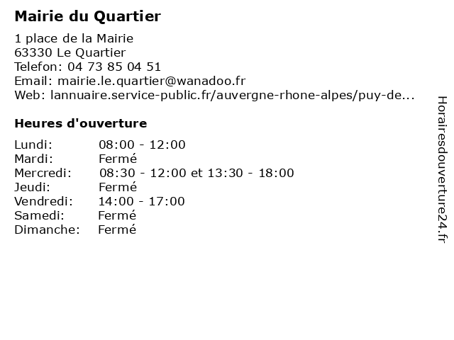 | Mercredi | 08:30-12:00 et 13:30-18:00 |