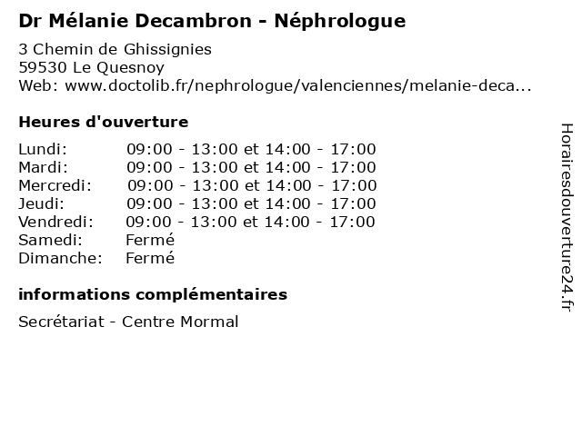 | Mardi | 09:00-13:00 et 14:00-17:00 |