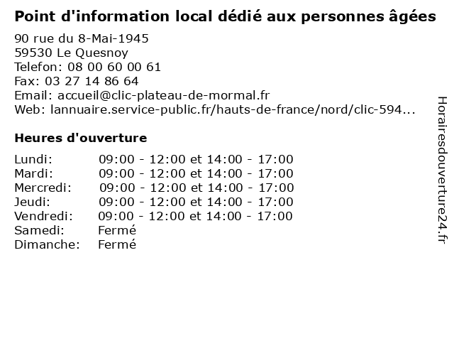 | Mardi | 09:00-12:00 et 14:00-17:00 |