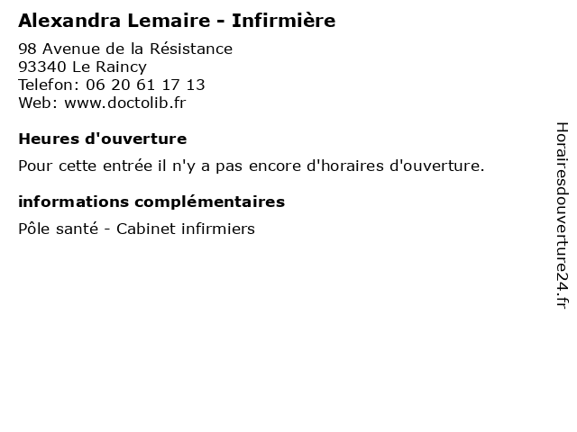 1 Lemaire Notaires Associés (Distance: 0,43 km) 7 Allée de la Fontaine, 93340 Le Raincy associés, lemaire, notaires 2 Alexandra Guerber - Diététicienne (Distance: 0,91 km) 5 Avenue Louise, 93250 Villemomble alexandra, alimentation, dieteticien, diététicienne, guerber, nourriture, sante 3 Alexandra Vecchierini - Ostéopathe (Distance: 2,18 km) 10 Rue de Simiane, 93190 Livry-Gargan actes et symptômes, alexandra, expertises, ostéopathe, ostéopathie de la femme enceinte, ostéopathie du sport, vecchierini 4 Dr Alexandra Malka - Pédiatre (Distance: 2,40 km) - Avenue du 14 Juillet, 93140 Bondy alexandra, docteur, dr, enfants, malka, médecin, pédiatre, vaccinations 5 Dr Alexandra Malka - Pédiatre (Distance: 2,68 km) 38 Avenue de la République, 93140 Bondy alexandra, docteur, dr, malka, médecin, pediatre, pediatrie, pédiatre, vaccinations 6 Dr Alexandra Molteni - Chirurgien-dentiste - secrétariat (Distance: 3,46 km) 36 Rue Saint-Claude, 93190 Livry-Gargan alexandra, chirurgien, consultation, dentiste, docteur, dr, med, molteni, médecin, médecine, secrétariat, traitement |