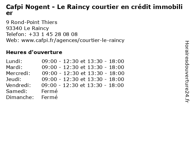 | Mercredi | 09:00-12:30 et 13:30-18:00 |