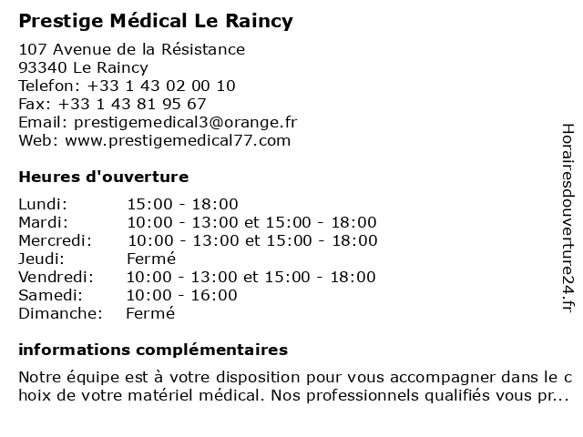 | Mercredi | 10:00-13:00 et 15:00-18:00 |