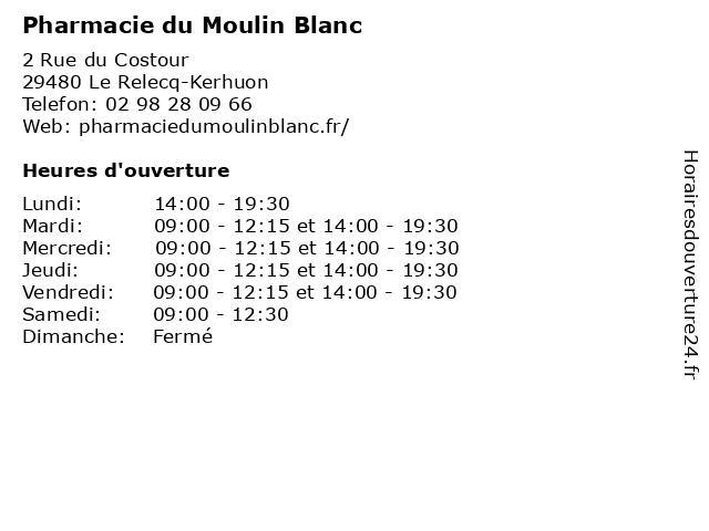 Termes de recherche pour Pharmacie du Moulin Blanc:du, blanc, pharmacie, moulin, médicaments, conseils, homéopathie |
