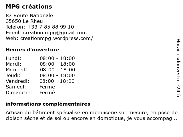 | Vendredi | 08:00-18:00 |