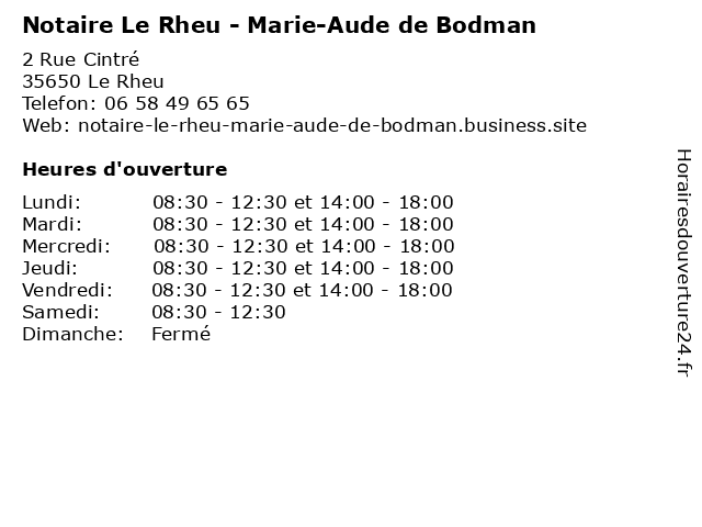 | Lundi | 08:30-12:30 et 14:00-18:00 |