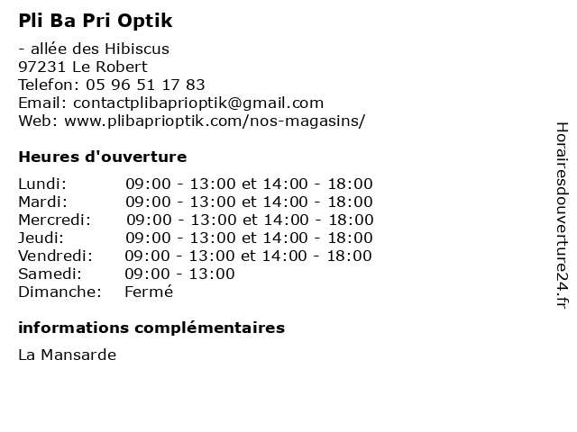 | Lundi | 09:00-13:00 et 14:00-18:00 |
