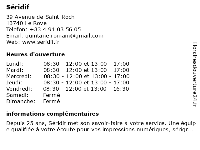 Lundi | 08:30-12:00 et 13:00-17:00 |
