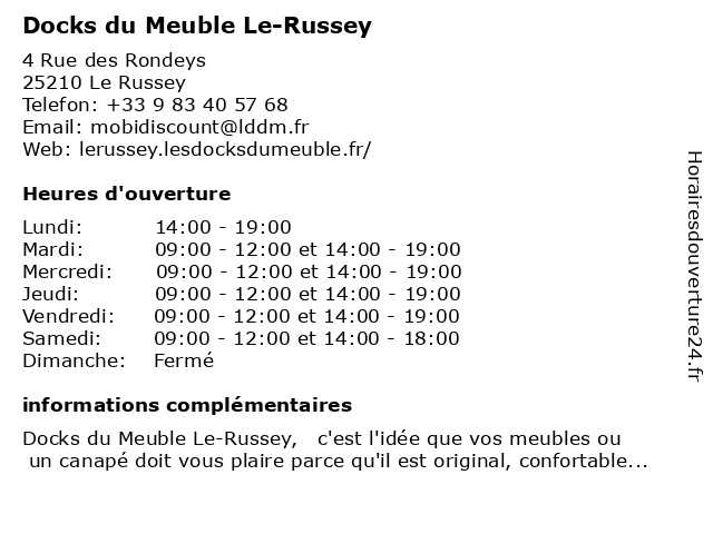 | Mardi | 09:00-12:00 et 14:00-19:00 |