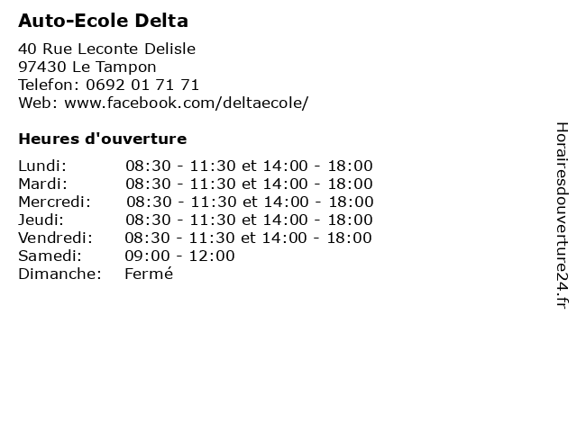 Lundi | 08:30-11:30 et 14:00-18:00 |