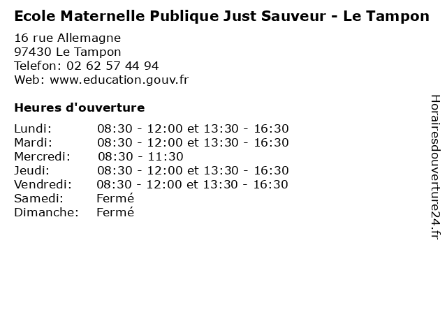 | Lundi | 08:30-12:00 et 13:30-16:30 |