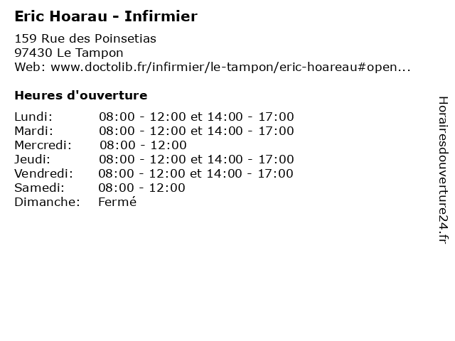 Lundi | 08:00-12:00 et 14:00-17:00 |