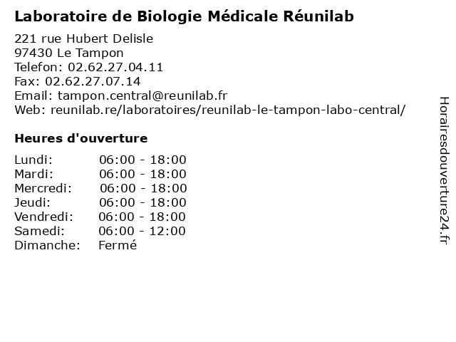 1 Laboratoire de Biologie Médicale Réunilab (Distance: 1,05 km) 100 Rue de France, 97430 Le Tampon biologie, de, laboratoire, médicale, prélèvements, réunilab 2 Laboratoire de Biologie Médicale Réunilab (Distance: 1,21 km) 34 rue Marius et Ary Leblond, 97430 Le Tampon biologie, de, laboratoire, médicale, prélèvements, réunilab 3 Laboratoire d'analyses médicales - Le Tampon - Cerballiance (Distance: 0,19 km) 201 Rue hubert delisle, 97430 Le Tampon cerballiance, d'analyses, dépistages, laboratoire, le, médicales, tampon 4 Laboratoire d'analyses médicales - La Châtoire - Cerballiance (Distance: 0,99 km) 100 Rue de france, 97430 Le Tampon cerballiance, châtoire, d'analyses, dépistages, la, laboratoire, médicales 5 Laboratoire d'analyses médicales - Trois Mares - Cerballiance (Distance: 2,30 km) 2a Rue charles baudelaire, 97430 Le Tampon cerballiance, d'analyses, dépistages, laboratoire, mares, médicales, trois 6 Laboratoire d'analyses médicales - Plaine des Cafres - Cerballiance (Distance: 7,58 km) 114 b Rue jean defos du rau, 97418 La Plaine des Cafres cafres, cerballiance, d'analyses, des, dépistages, laboratoire, médicales, plaine |