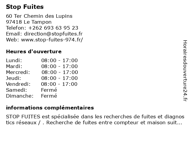 | Lundi | 08:00-17:00 |