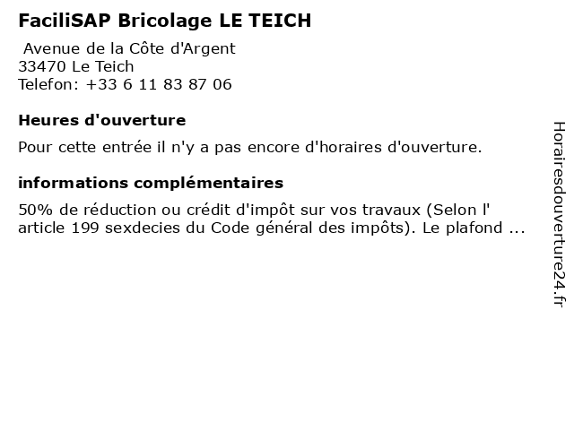 | Appeler FaciliSAP Bricolage LE TEICH | |