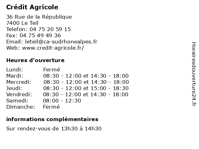 1 Crédit Agricole (Distance: 4,95 km) 39 Avenue Jean Jaurès, 26200 Montelimar agence, agricole, assurance, bancaire, banque, crédit 2 Crédit Agricole (Distance: 5,01 km) 11 Place du Théâtre, 26200 Montelimar agricole, assurance, banque, credit, crédit, epargne, gascogne, mutuel, pyrénées, services 3 Crédit Agricole (Distance: 5,27 km) 5 Boulevard Aristide Briand, 26200 Montelimar agence, agricole, assurance, bancaire, banque, crédit 4 Crédit Agricole (Distance: 5,94 km) 116 Boulevard René Coty, 26200 Montelimar agence, agricole, assurance, bancaire, banque, crédit 5 Crédit Agricole (Distance: 12,33 km) 13 Place du Champ de Mars, 26290 Donzère agence, agricole, assurance, bancaire, banque, crédit 6 Crédit Agricole (Distance: 13,07 km) 4 Place De La Liberté, 07350 Cruas agence, agricole, assurance, bancaire, banque, crédit |
