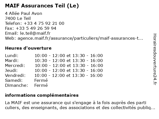 Termes de recherche pour MAIF Assurances Teil (Le):le, assurances, teil, maif |