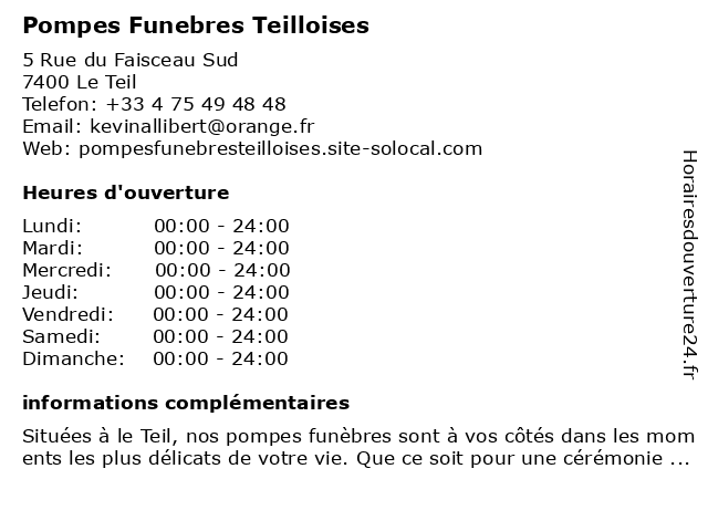 1 Pompes Funèbres Silhol (Distance: 0,76 km) 2 Boulevard Stalingrad, 07400 Le Teil funèbres, pompes, silhol 2 Pompes Funèbres Roc-Eclerc (Distance: 3,69 km) 6 Allée Hispano Suiza, 26200 Montélimar articles funéraires, assistance rapatriement, démarches admnistratives, eclerc, fleurs fraîches, funèbres, gestion des obsèques, pompes, prévoyance obsèques, roc, travaux de marbrerie et cimetière 3 Pompes funèbres PFG MONTÉLIMAR (Distance: 4,92 km) 72 Avenue Jean Jaurès, 26200 Montélimar avis de décès, crémation, entretien de sépulture, fleurs deuil, formalités après obsèques, funèbres, inhumation, marbrerie, montélimar, monument funéraire, pfg, pompes, pompes funèbres, prévoyance obsèques 4 Albin Pump - Pompes péristaltiques industrielles (Distance: 5,40 km) 6 Avenue du Meyrol, 26200 Montelimar albin, fabrication, industrielles, pompes, pump, péristaltiques 5 Pompes Funèbres Marbrerie Ghisleri (Distance: 7,13 km) 113 Route de Sauzet, 26200 Montélimar funèbres, ghisleri, marbrerie, pompes 6 Pompes Funèbres De Provence SAS (Distance: 7,22 km) 119 Route de Sauzet, 26200 Montélimar de, funèbres, pompes, provence, sas |