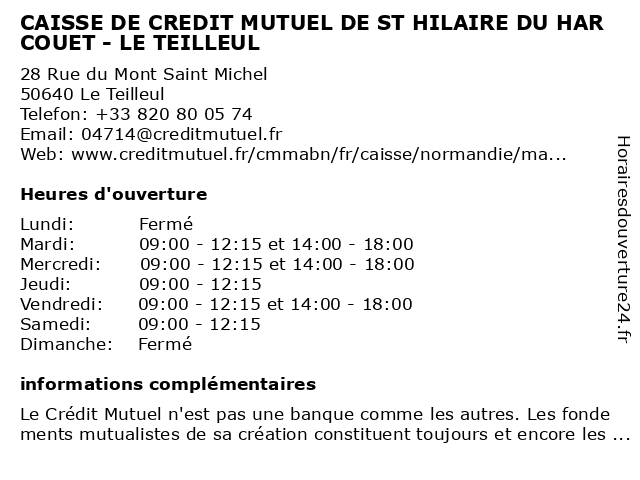 Termes de recherche pour CAISSE DE CREDIT MUTUEL DE ST HILAIRE DU HARCOUET - LE TEILLEUL:du, le, de, st, hilaire, harcouet, crédit, mutuel, caisse, teilleul |