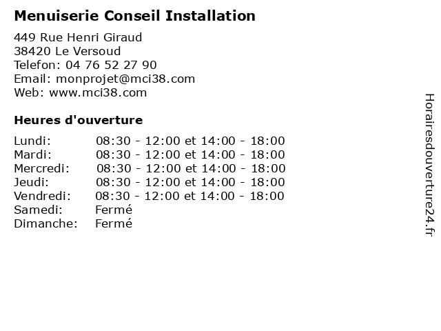 | Lundi | 08:30-12:00 et 14:00-18:00 |