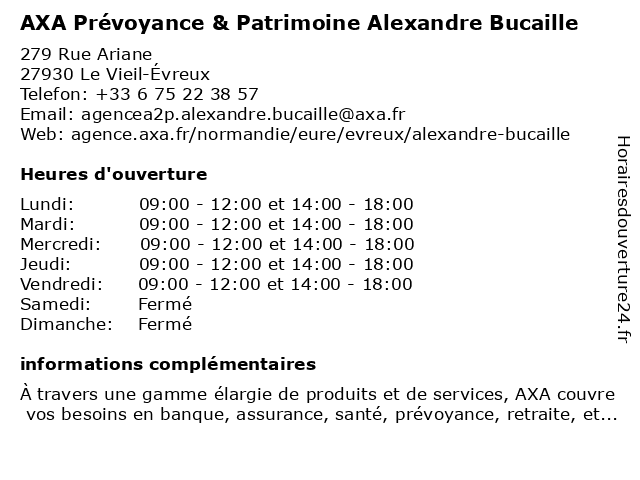| Mardi | 09:00-12:00 et 14:00-18:00 |