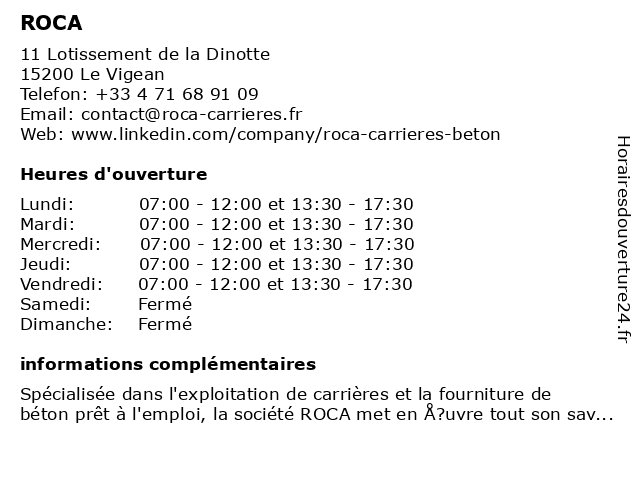1 ROCA (Distance: 23,64 km) La Coustie, 15400 Riom-ès-Montagnes roca