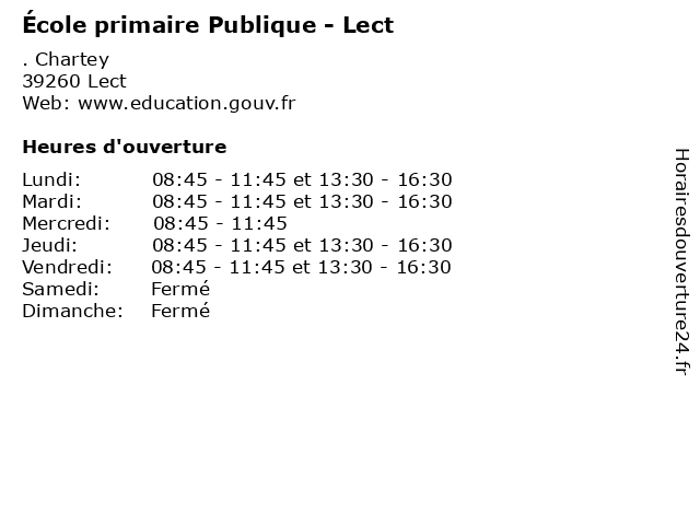 | Mardi | 08:45-11:45 et 13:30-16:30 |