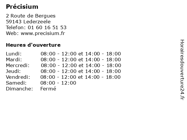| Lundi | 08:00-12:00 et 14:00-18:00 |