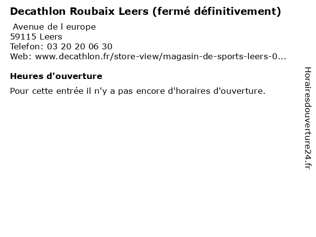 | Appeler Decathlon Roubaix Leers (fermé définitivement) | |