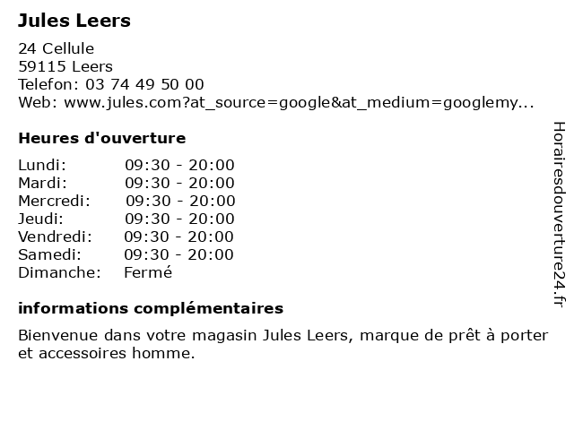 1 Jules (Distance: 0,19 km) 1 Avenue de l'Europe, 59115 Leers beaute, bouygues, cafe, chausures, club, enfants, jules, mode femmes, mode hommes, restaurant, sport, telecom 2 Jules (Distance: 1,77 km) 228 Avenue Alfred Motte, 59100 Roubaix chaussures, jules, lingerie, mode enfant, mode femmes, mode hemmes, sport 3 4 Jules (Distance: 6,23 km) . Avenue du Grand Cottignies, 59290 Wasquehal accessoires, homme, jules, mode, vêtements 5 Jules Wasquehal (Distance: 6,83 km) Centre Commercial Carrefour, 59290 WASQUEHAL jules, magasin de smokings, magasin de t-shirts, magasin d’accessoires de mode, mode, wasquehal 6 Jules (Distance: 7,45 km) - RUE PERE DAMIEN, 7700 MOUSCRON accessoires, chemises, jules, pulls, sweats, t-shirts |