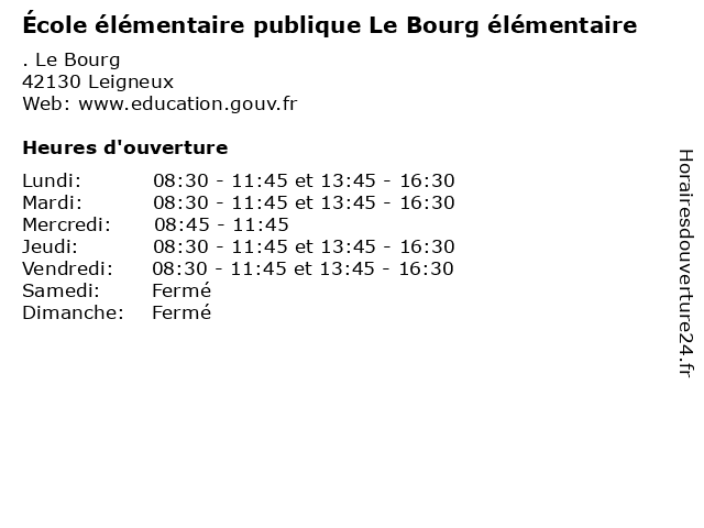 | Mardi | 08:30-11:45 et 13:45-16:30 |