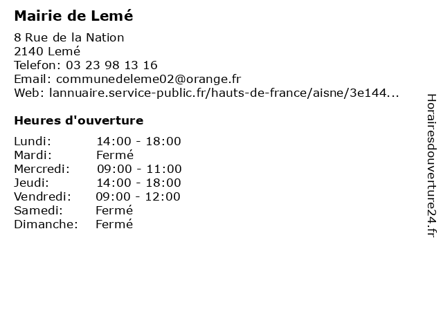 Termes de recherche pour Mairie de Lemé:de, administration, mairie, service, public, lemé |