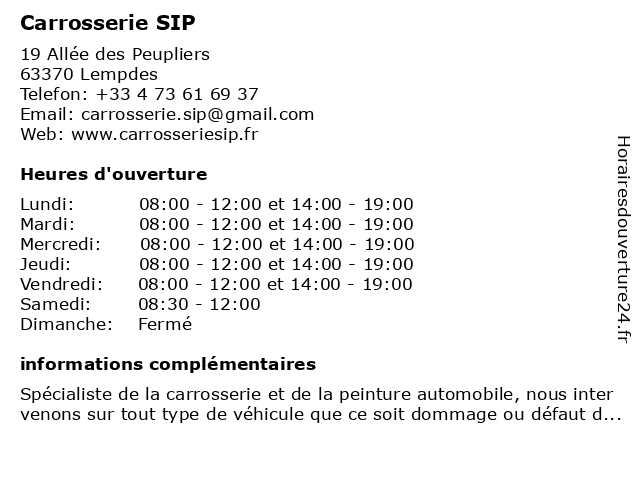 | Lundi | 08:00-12:00 et 14:00-19:00 |